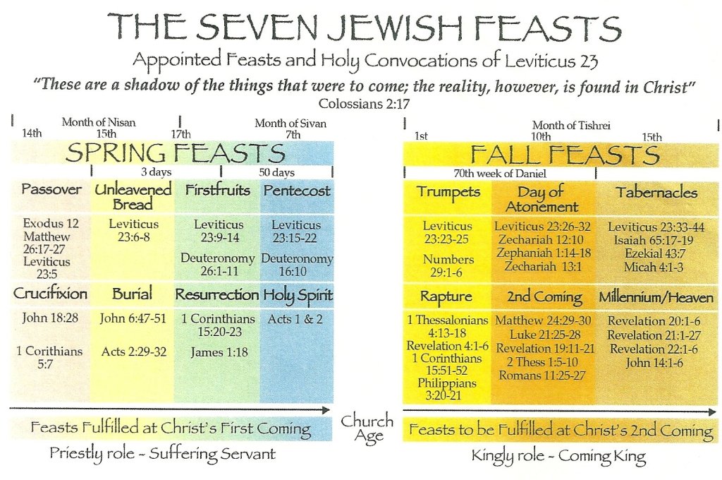 The Spring Feasts: Passover, Unleavened Bread, First Fruits, & Shavuot were fulfilled at Yeshua’s first coming with His Death, Burial, Resurrection, & The Fulfillment of The Holy Spirit.